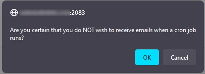 Kliknite na dugme Ok i isključićete slanje email notifikacija za sve cron job-ove.