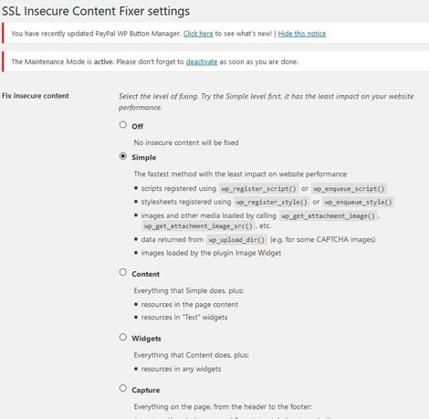 Ako i dalje dobijate upozorenja, probajte sledeće nivoe: Content, Widgets, Capture, pa na kraju Capture All (poslednji se koristi samo ako ništa drugo ne pomaže, jer može da uspori sajt)