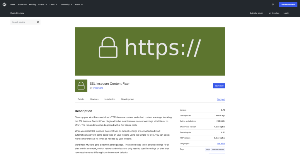 Ako imate pristup svom WordPress admin dashboard-u, možete brzo da rešite većinu problema pomoću SSL Insecure Content Fixer plugina.