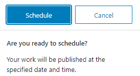Kliknite na plavo dugme Schedule da biste zakazali objavljivanje bloga u kasnijem datumu u classic editoru.