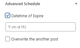 Ovo će prikazati opcije zakazivanja gde možete izabrati kada želite da promene budu objavljene. Takođe čekiranjem opcije Advanced Schedule > Datetime of Expire možete uneti datum kada želite da post istekne