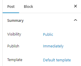 Kada se nalazite u post editoru, primetićete da je u panelu za objavljivanje podrazumevano postavljena vrednost Immediately.