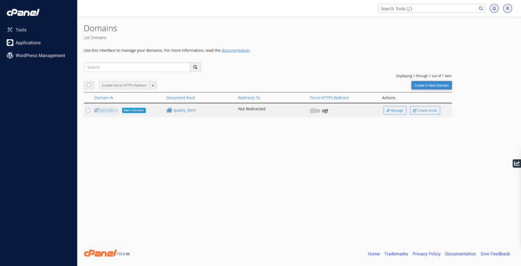 Bez obzira na to da li koristite stariju ili noviju verziju cPanel-a, svi domeni se dodaju u sekciji Domains. To je centralno mesto za upravljanje domenima na hosting nalogu.