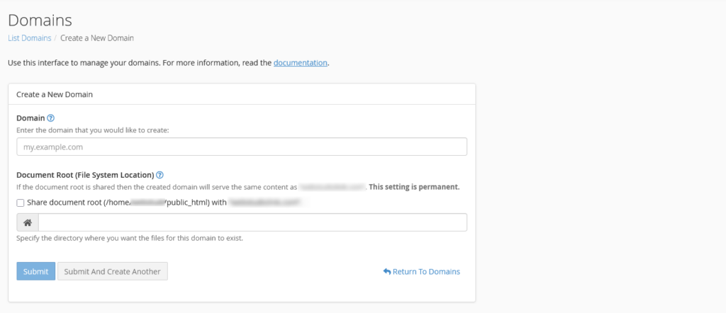 U novijim verzijama cPanel-a, poddomeni se više ne dodaju preko posebnog Subdomains ekrana, već se kreiraju kroz istu sekciju Domains, kao i ostali domeni. Razlika je u tome šta unosite u polje Domain i kako se podešava Document Root.