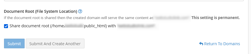 Ako se vaš sajt nalazi u folderu /public_html, onda i alias domen treba da koristi taj isti folder. U nekim verzijama cPanel-a, kao što je verzija koju mi koristimo, postoji opcija za deljenje foldera (npr. Share document root). Ona ovde mora biti uključena.