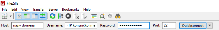 Host – naziv domena (npr. ftp.vasdomen.rs) ili adresa servera/IP adresa