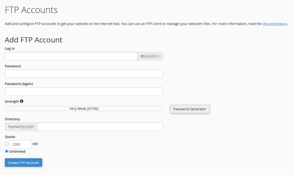 Jedna od najvećih prednosti FTP Accounts opcije je mogućnost ograničavanja pristupa. Umesto da se koristi glavni nalog, preporučuje se kreiranje posebnih FTP naloga za svakog korisnika.