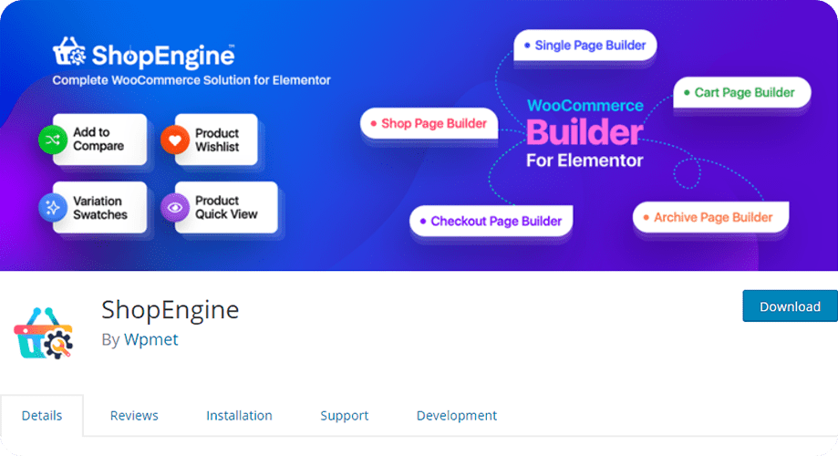 ShopEngine nije alat koji služi samo za upoređivanje proizvoda. U pitanju je WooCommerce page builder nove generacije sa preko 50 vidžeta i 4 modula. Modul za upoređivanje proizvoda je samo jedan od njih.