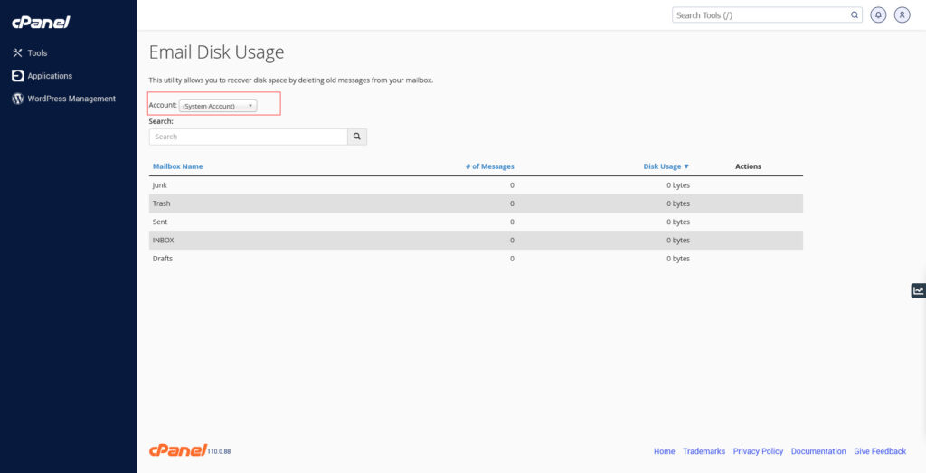 Srećom, cPanel vam omogućava detaljan pregled putem opcije Email Disk Usage. Ova opcija prikazuje koliko prostora zauzimaju pojedinačni e-mail nalozi, kao i njihovi pojedinačni direktorijumi.