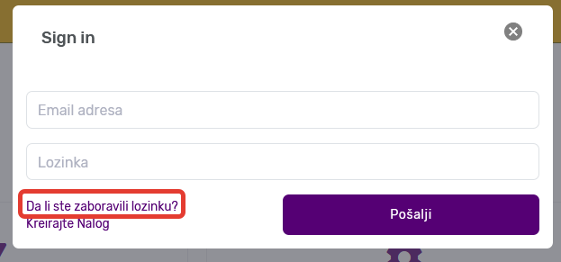 Na Vašu e-mail adresu stići će veza za promenu lozinke.